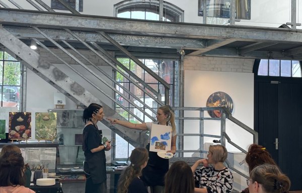 Innerhalb kurzer Zeit war das Event ausgebucht. Geleitet wurde der Abend von „The Act“ aus Frankfurt. Durch den Mix von Collage und Malerei konnten die Teilnehmer, inspiriert durch die aktuell ausgestellten, magischen Bildwelten der Künstlerin Marina Sailer, ihre eigenen Traumlandschaften erschaffen.